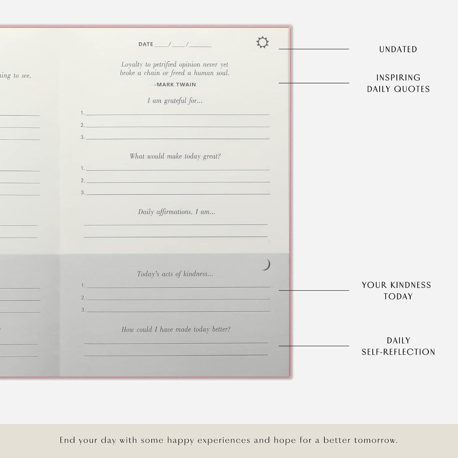 Because every heartbeat is a reason to be grateful. This beautifully designed, premium gratitude journal is your daily companion for creating calm, clarity, and joy in every moment. It’s more than just a notebook — it’s a mindful guide that helps you reconnect with yourself, find peace, and make gratitude a natural part of your life. Each day begins with guided morning prompts that awaken positivity and presence, daily affirmations that strengthen self-love, and space to set your priorities so you move through the day with purpose. In the evening, you’ll find reflection questions that help you unwind, express gratitude, and find meaning in new experiences.